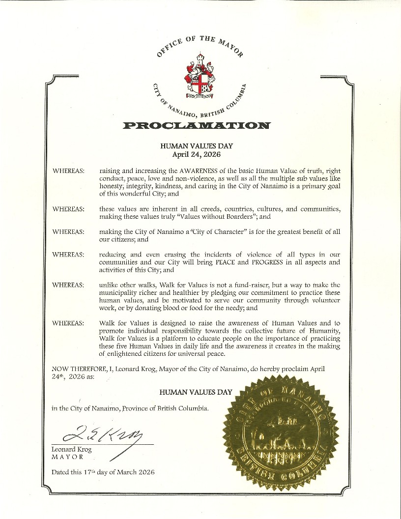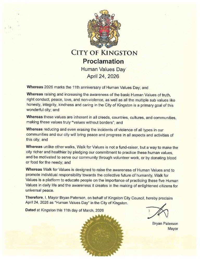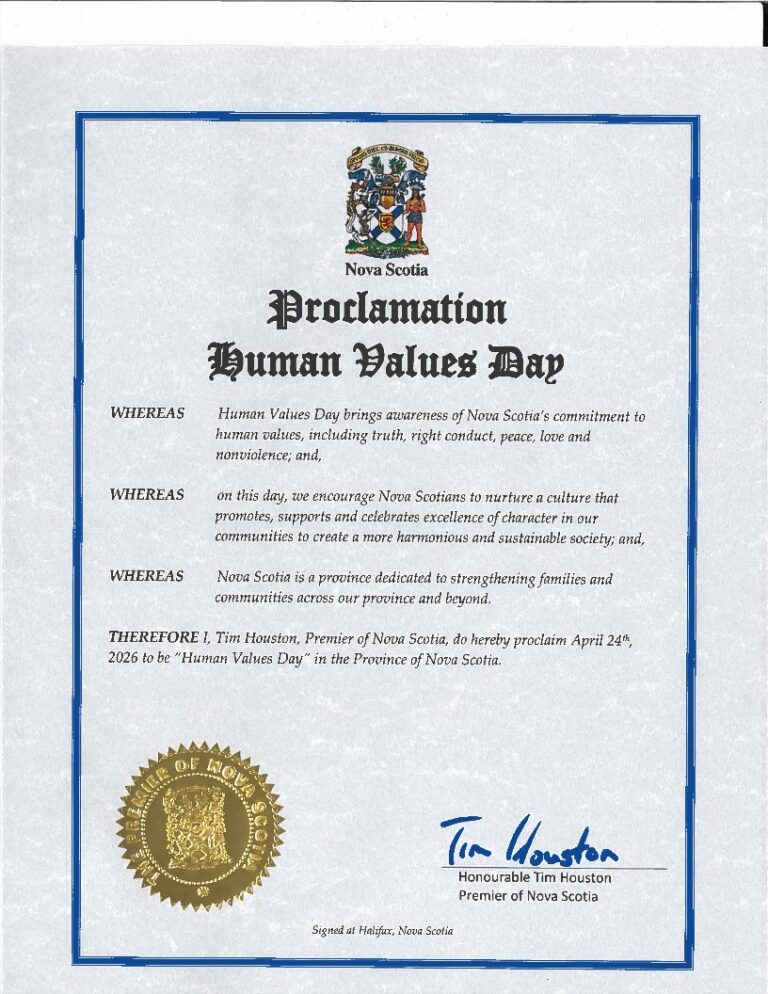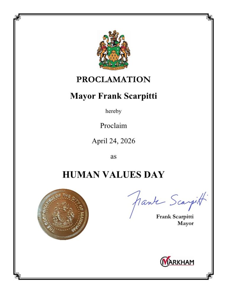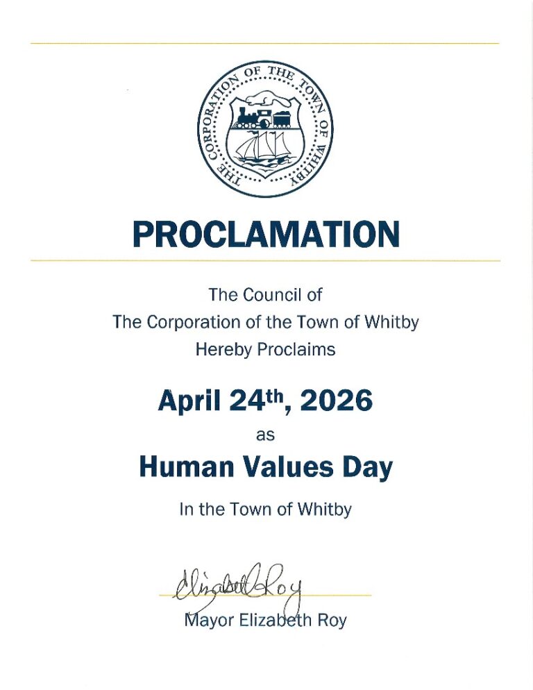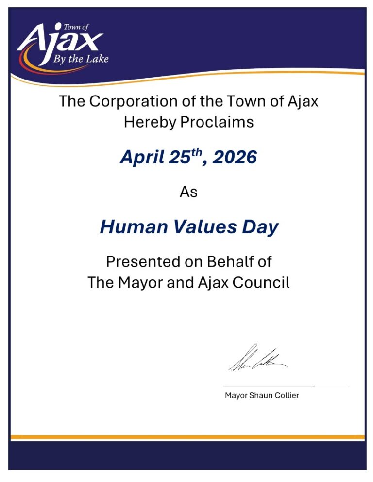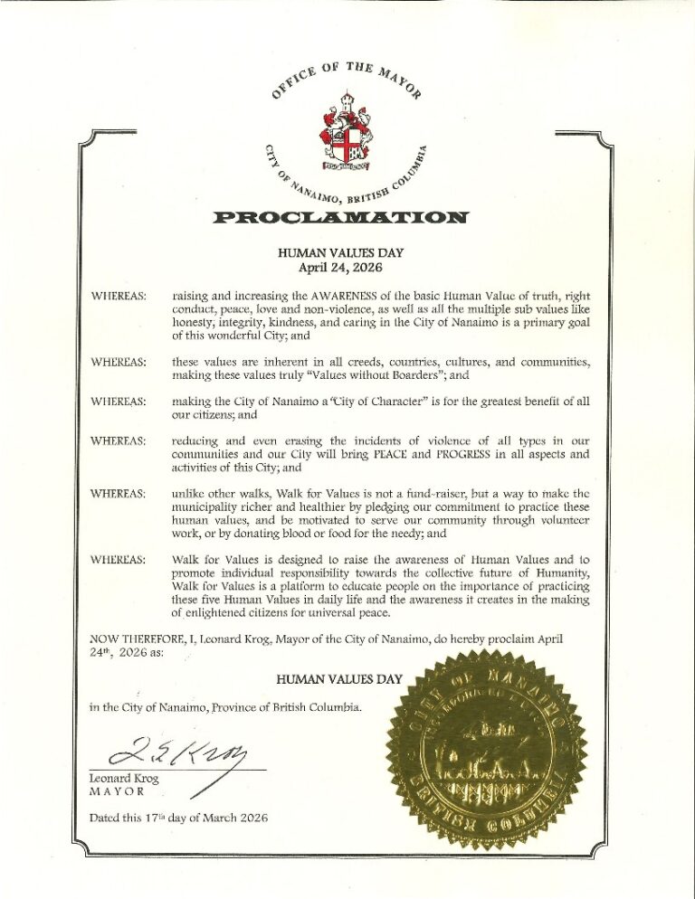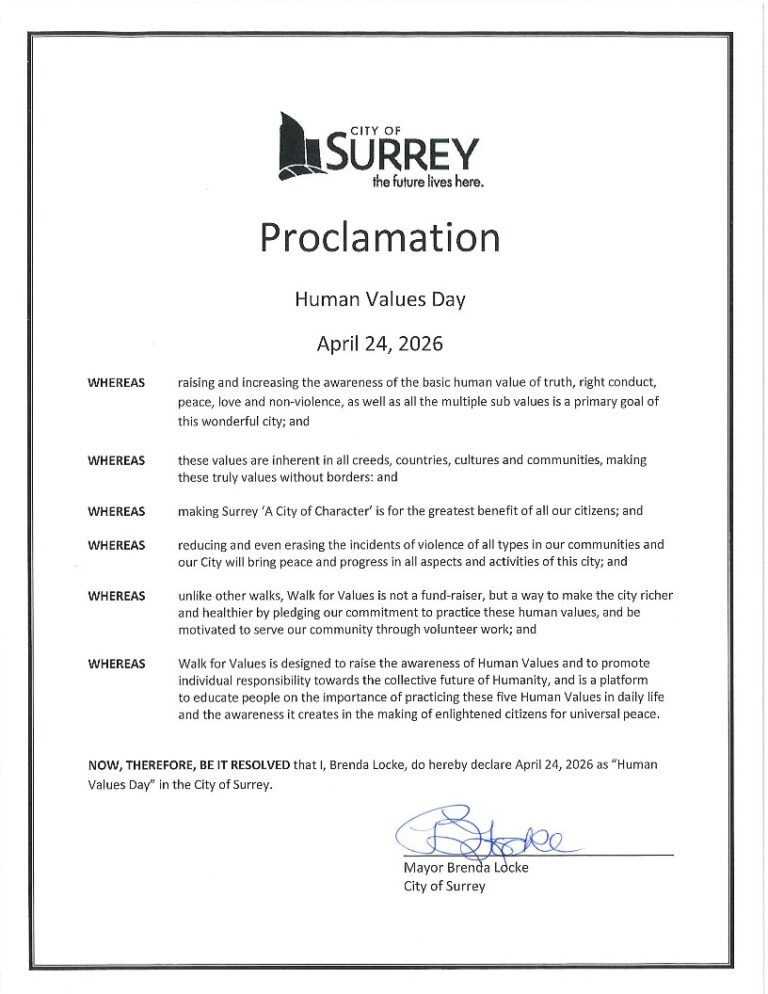 In Canada, 90 cities have proclaimed April 24th as ‘Human Values Day’ and have become part of this inspiring initiative which aims at bringing about collective transformation.