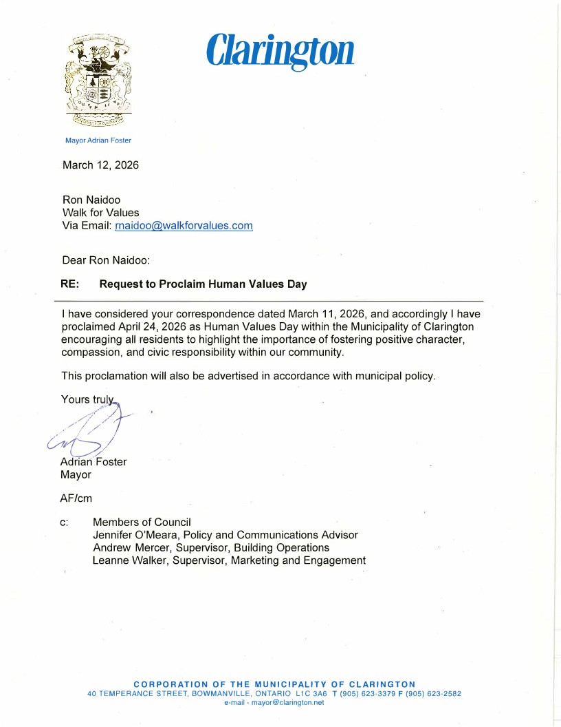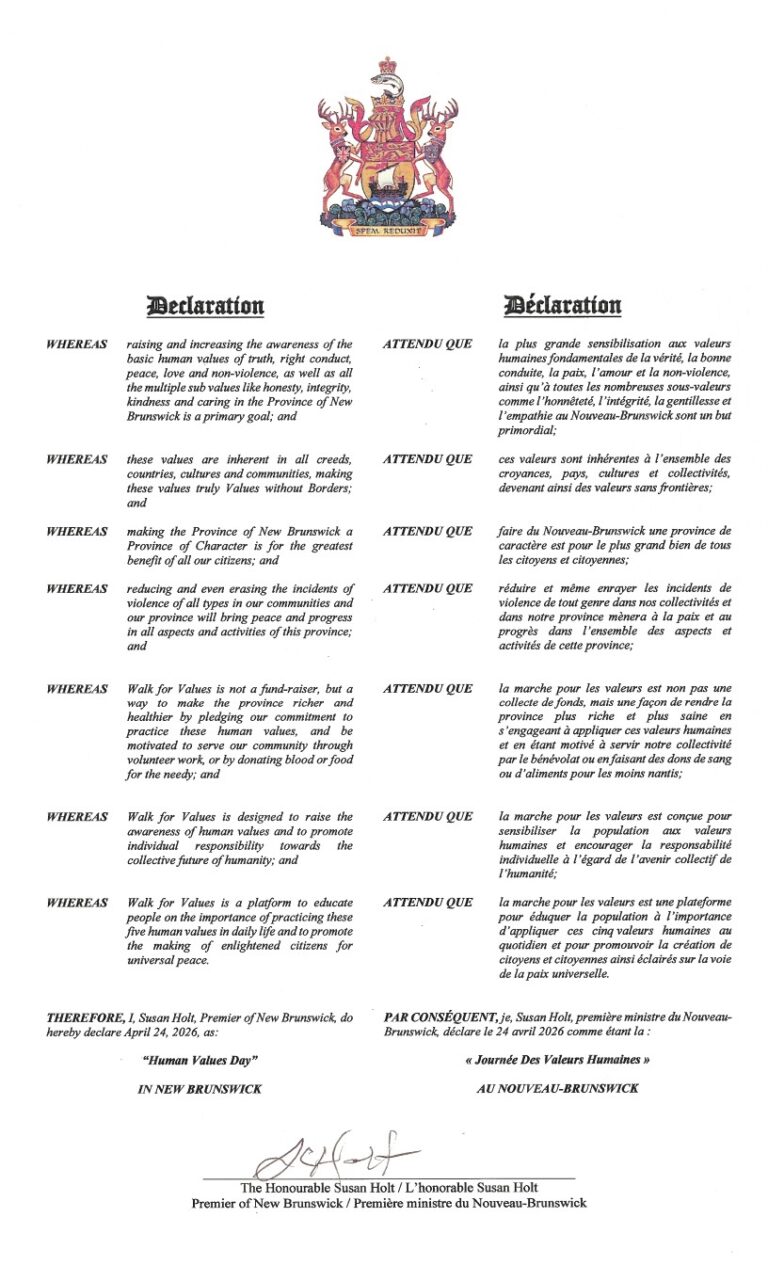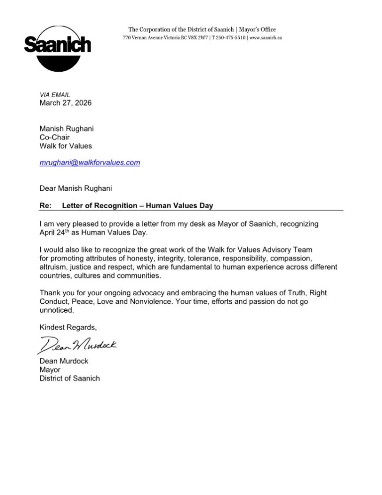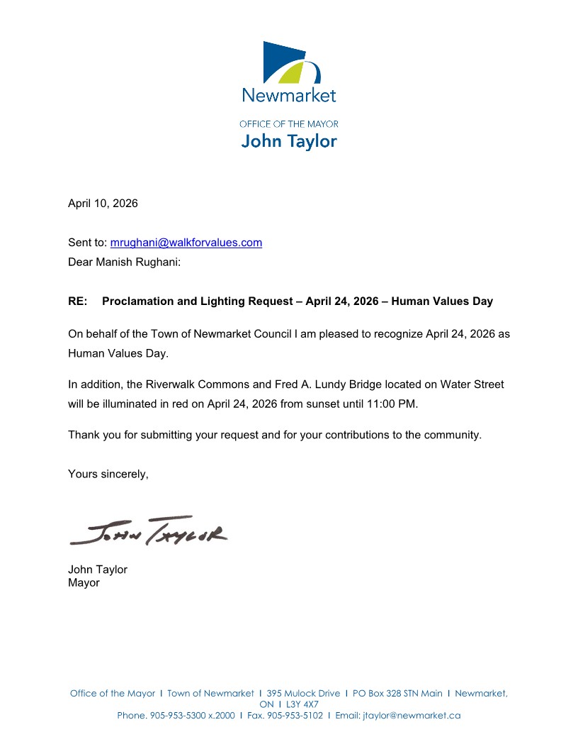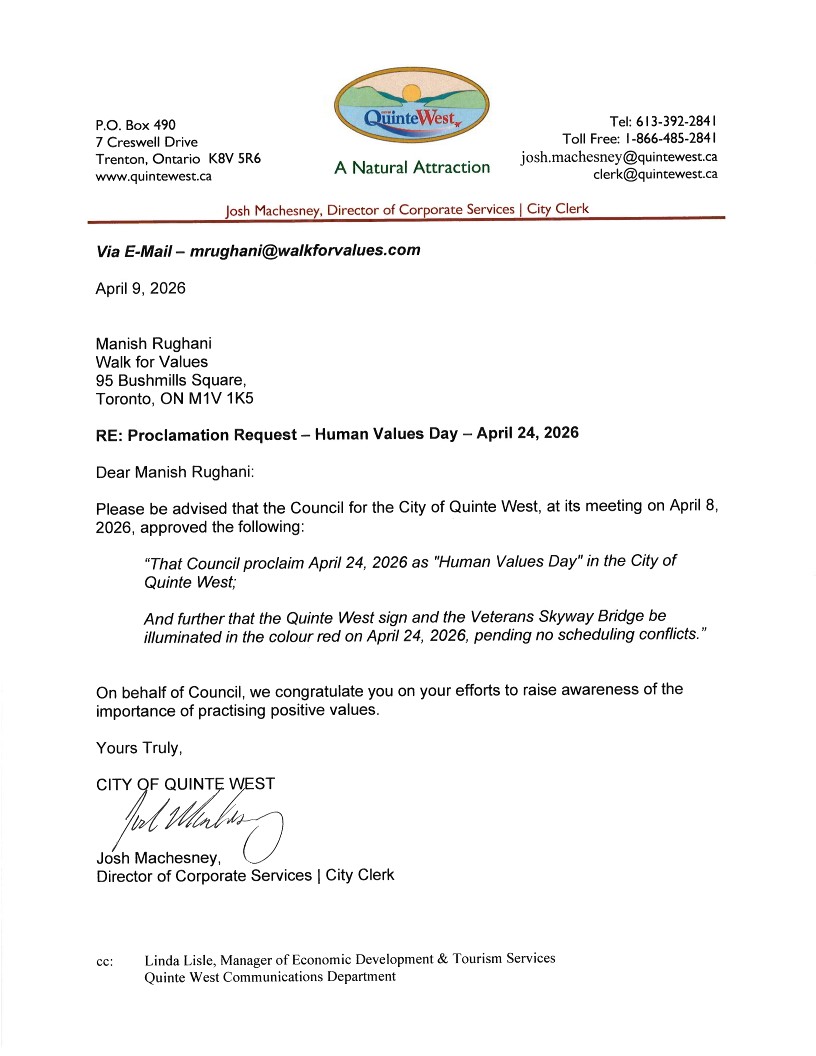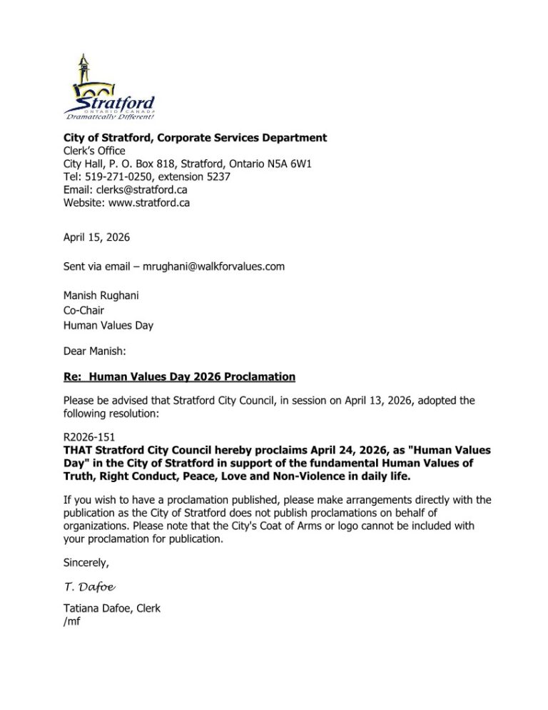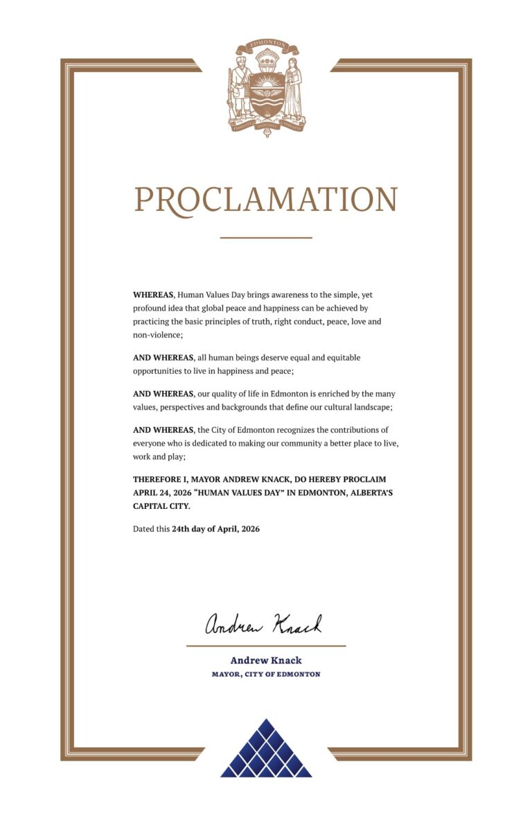 In Canada, 90 cities have proclaimed April 24th as ‘Human Values Day’ and have become part of this inspiring initiative which aims at bringing about collective transformation.